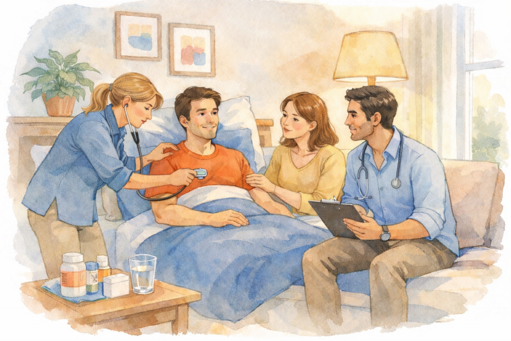 - Soutenir les professionnels de santé de proximité, notamment les médecins traitants et les équipes soignantes à domicile, sans se substituer à eux ni intervenir directement dans les soins infirmiers.